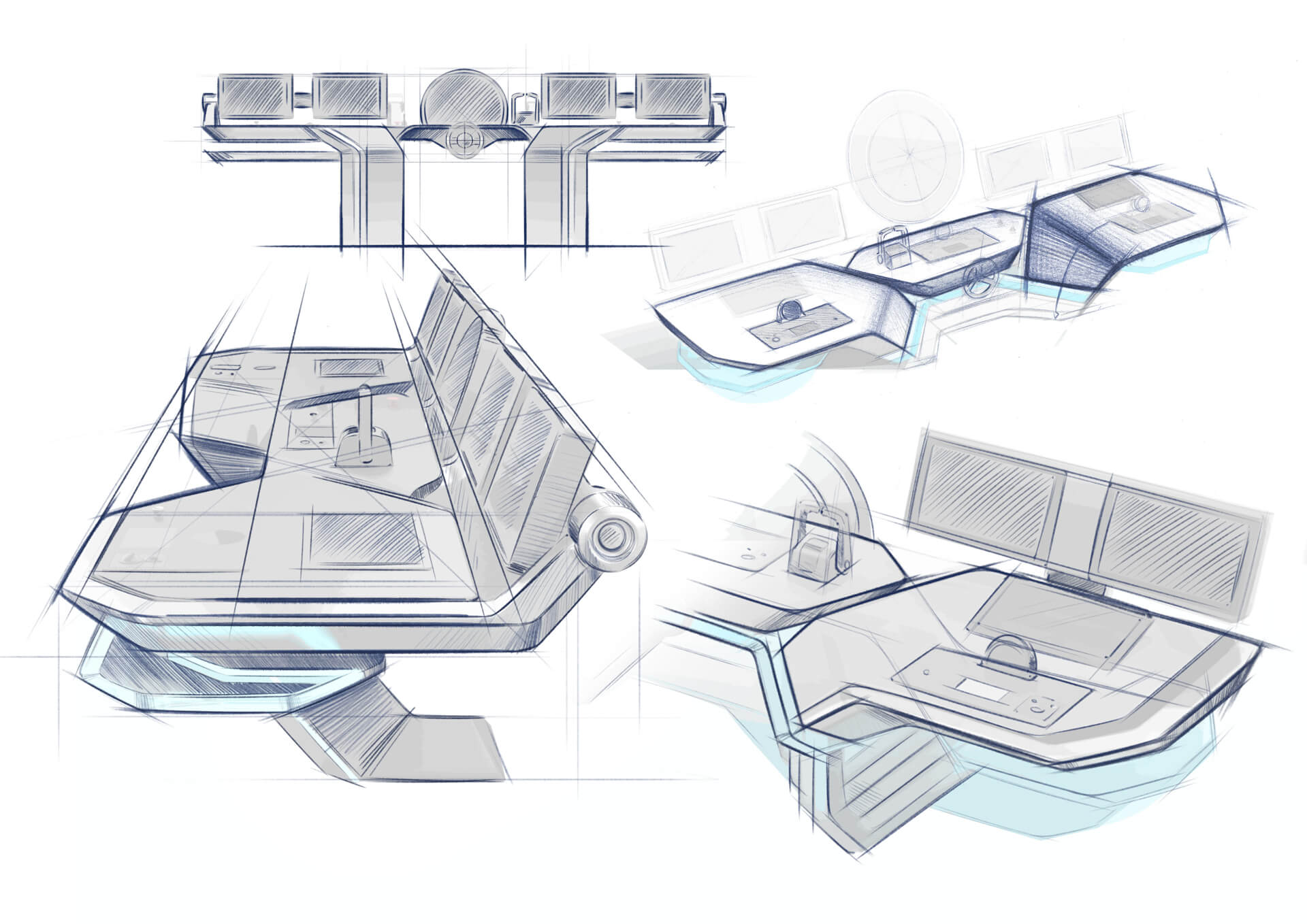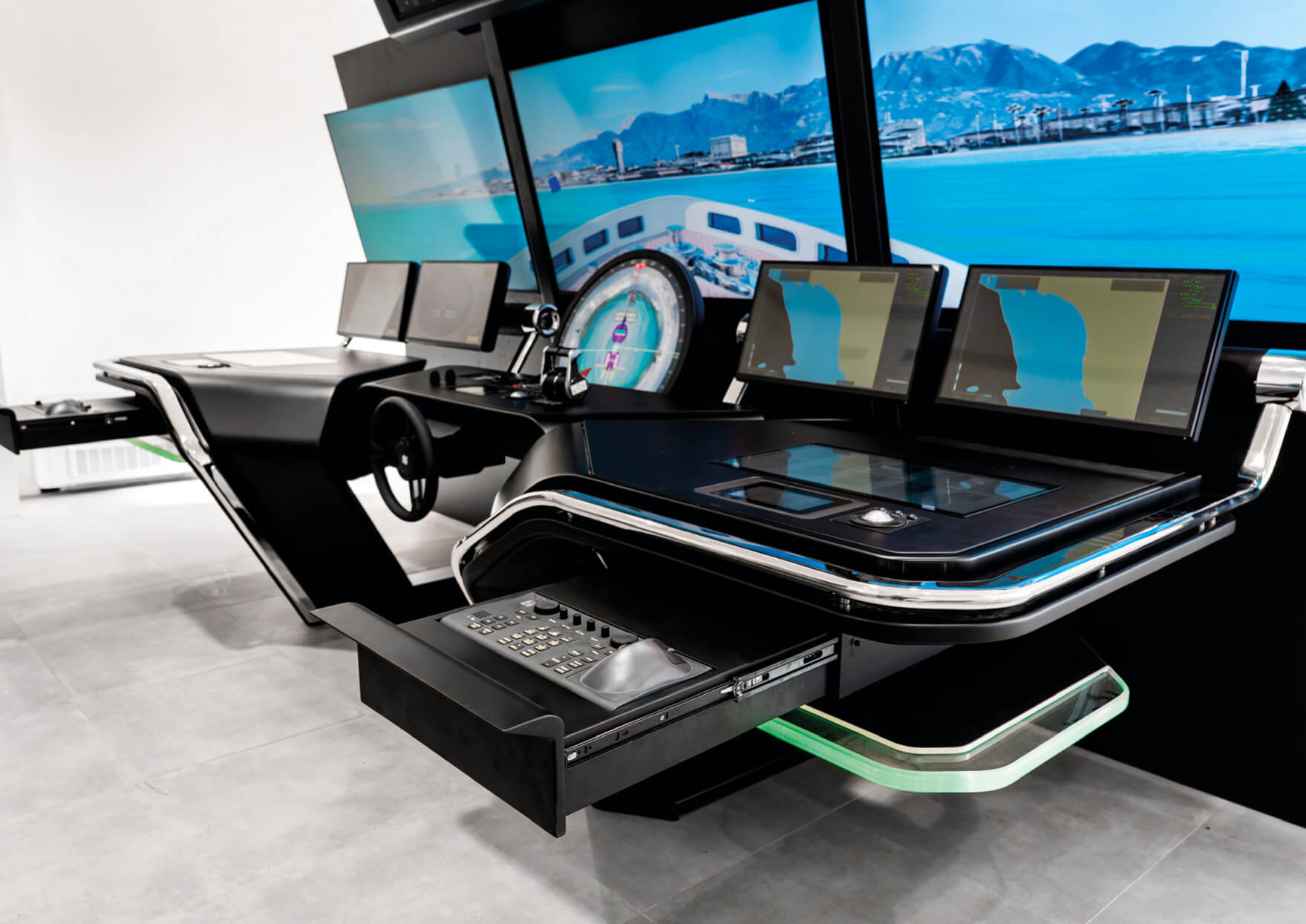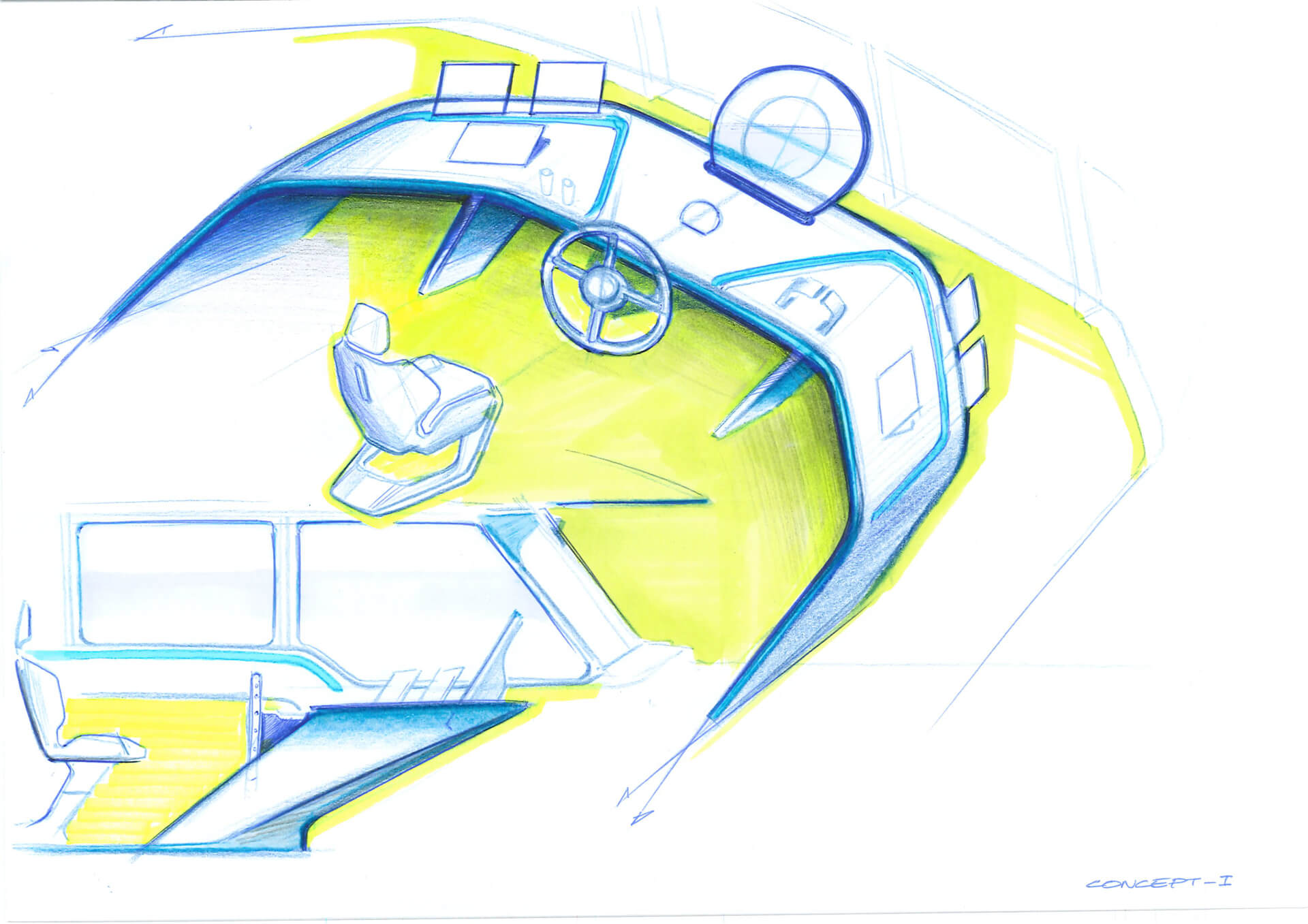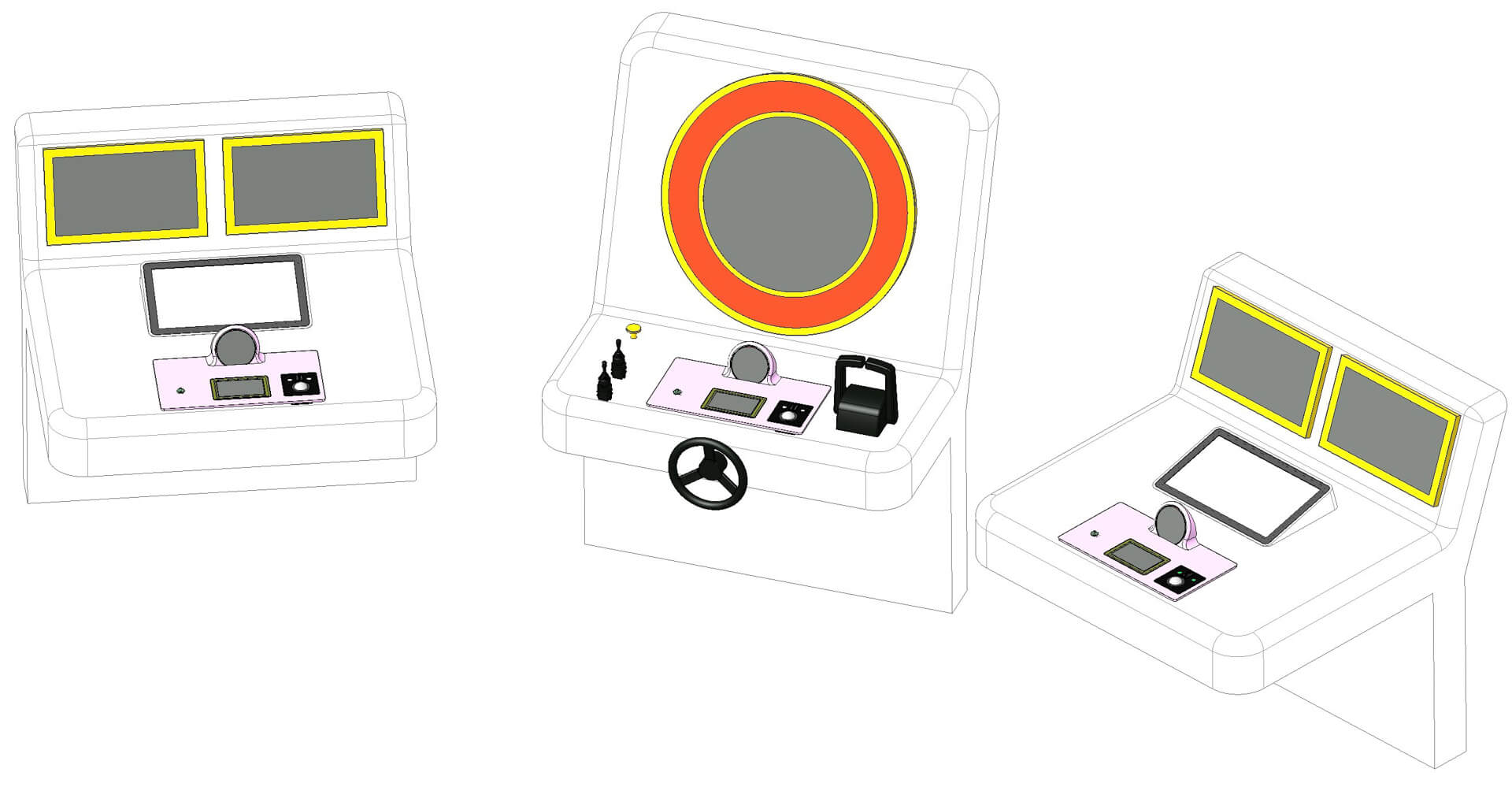 Selezioniamo la direzione stilistica e la raffiniamo. Il design prende corpo: integriamo l’hardware (monitor, manette, joystick) in un insieme armonico, definendo un linguaggio visivo che unisce l’eleganza all’operatività, eliminando il superfluo per concentrare l’attenzione sulla navigazione.