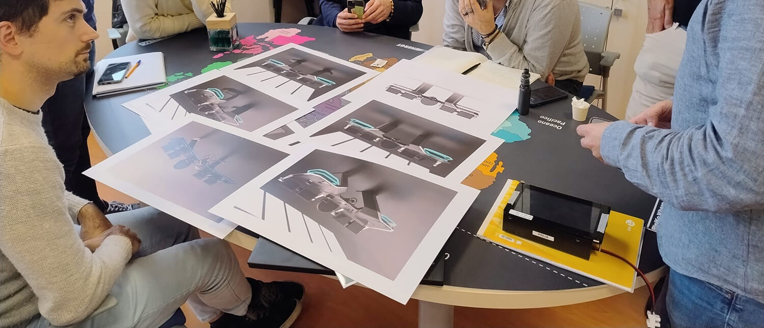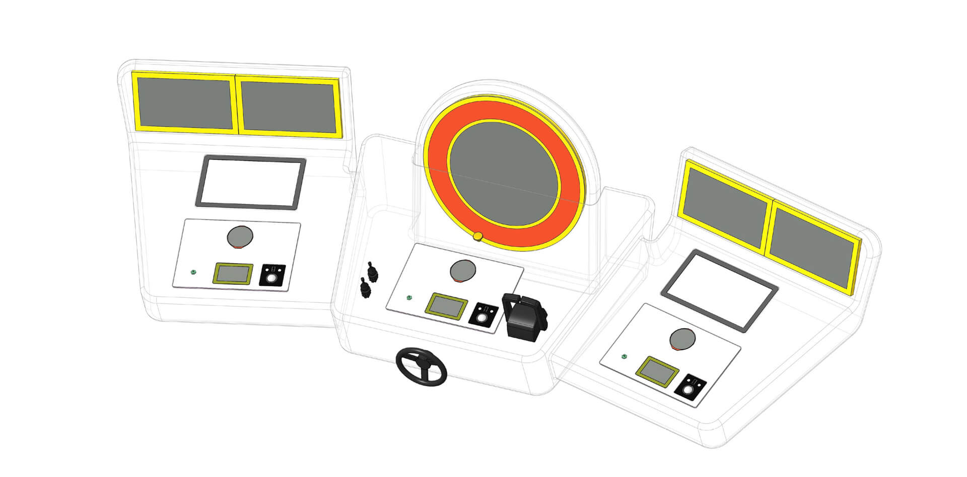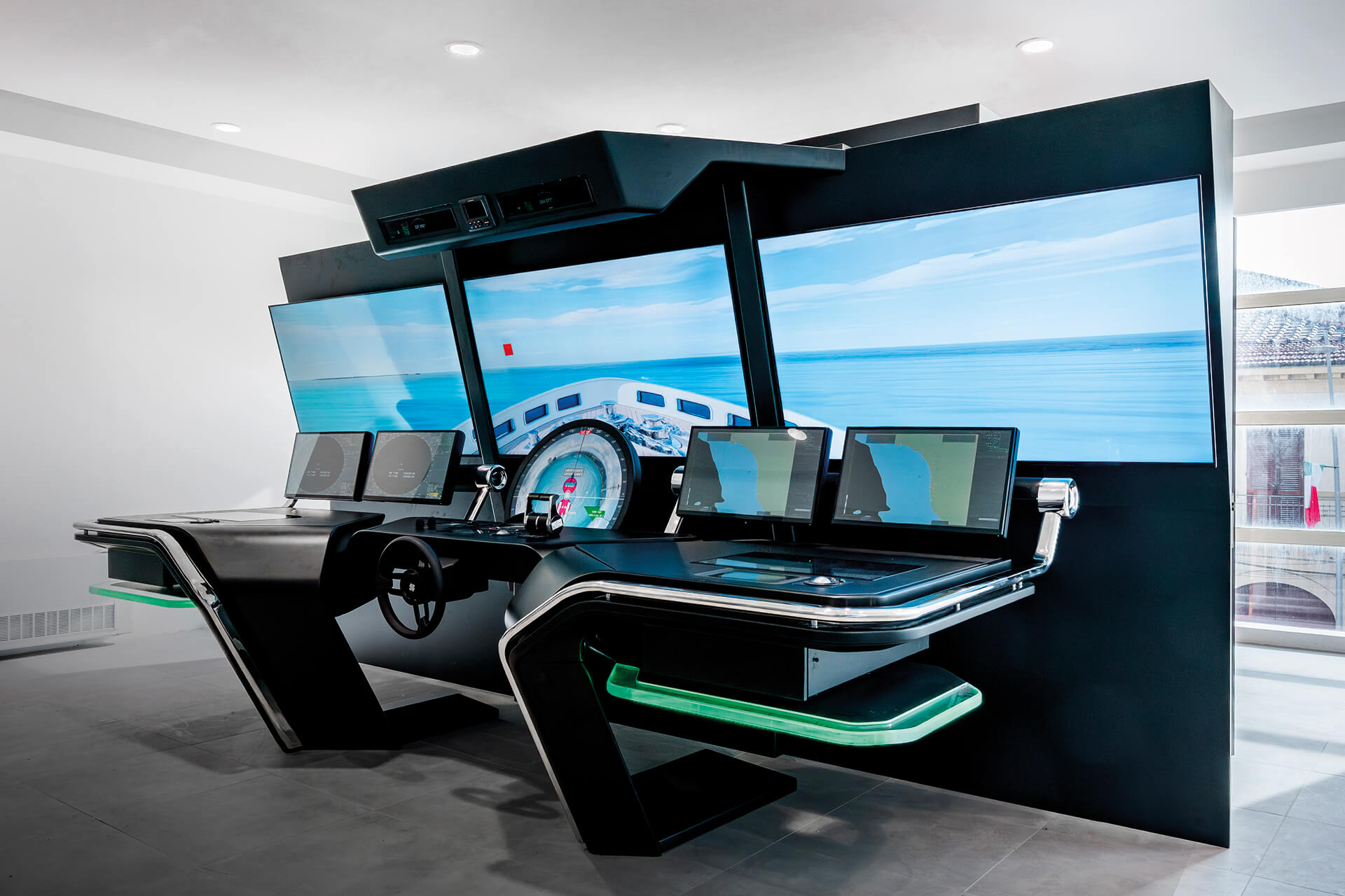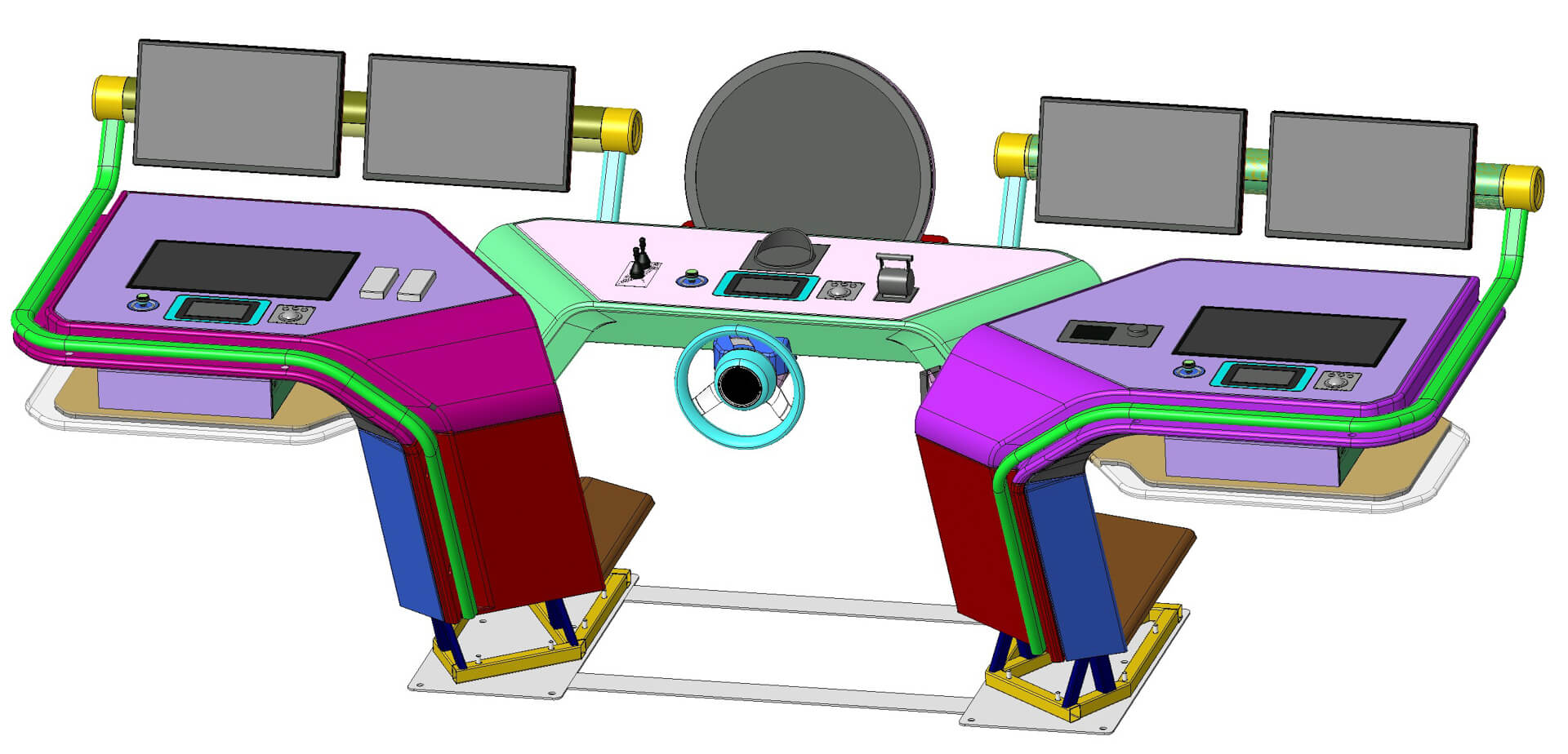 Selezioniamo la direzione stilistica e la raffiniamo. Il design prende corpo: integriamo l’hardware (monitor, manette, joystick) in un insieme armonico, definendo un linguaggio visivo che unisce l’eleganza all’operatività, eliminando il superfluo per concentrare l’attenzione sulla navigazione.